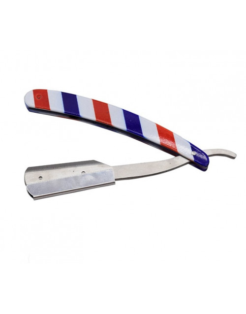Ξυράφι με ιδιαίτερη διακόσμηση λαβής σε χρώματα barber pole (Μπλε, άσπρο, κόκκινο)